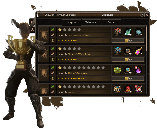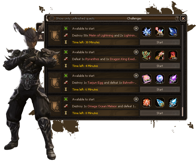 Every MMORPG player enjoys competition and challenges. Our global challenges operate on a "first come, first served" basis, but reward the first three participants who complete them.