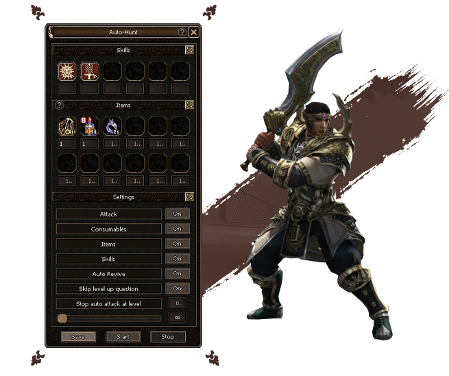 Do you have a job or limited time? No problem, our Autohunt feature helps level your character when you can`t actively play. While using Autohunt, you won`t receive item or Yang drops, focusing purely on experience gain.