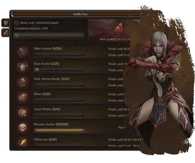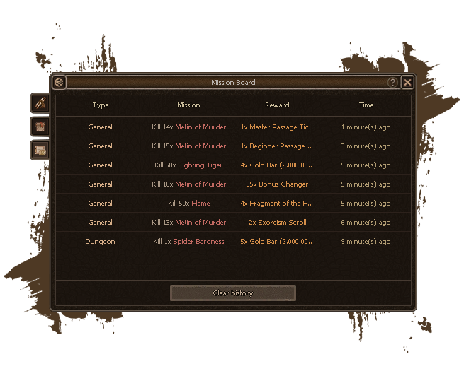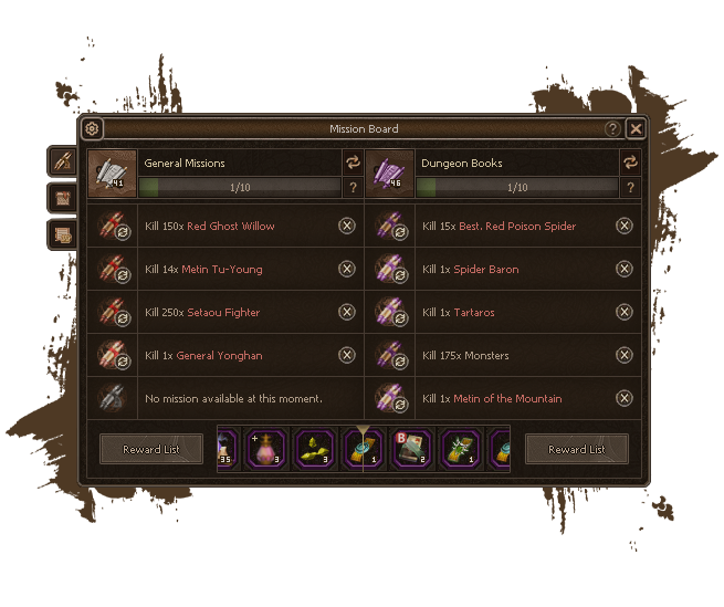 To ensure constant engagement, we offer numerous Hunting Missions. In the early game, they appear every 5 levels, while at higher levels they become available every level. These missions provide substantial Yang, Experience, and excellent item rewards.