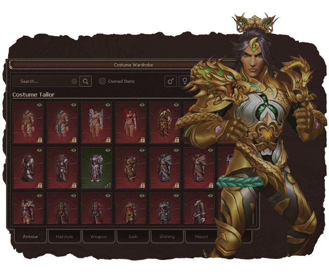 Let`s talk fashion. One of the most important systems of nowadays games - Costumes. Costumes improve your character`s appearance and provide temporary bonuses.Frustrated by expiring costumes? Not anymore, all our costumes are permanent. Only the bonuses are temporary and need refilling when time expires.