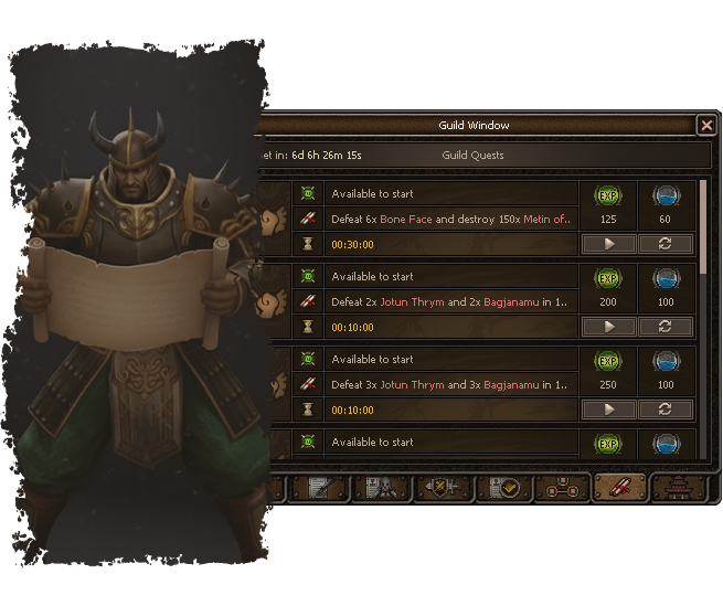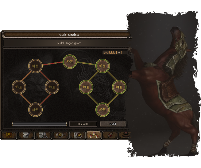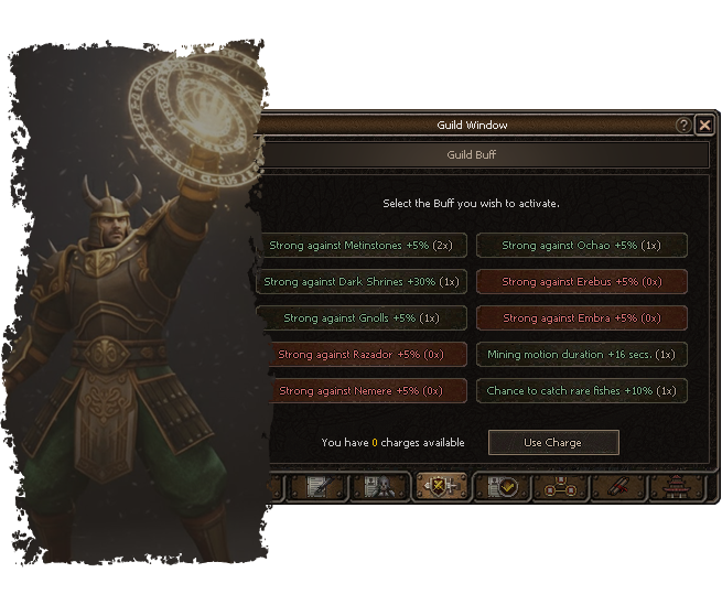With advanced guild levels, you can choose a path in the guild organigram and maintain your bonuses using guild energy.