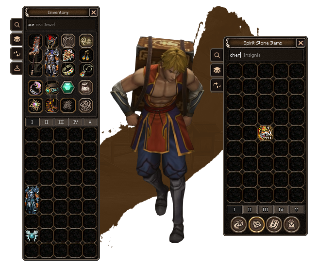 Inventory Management is a critical component of MMORPGs, but limited space can become frustrating. We offer 5 inventory pages and 4 specialized category-specific inventories. Both regular and specialized inventories include quality of life features like advanced search functionality.