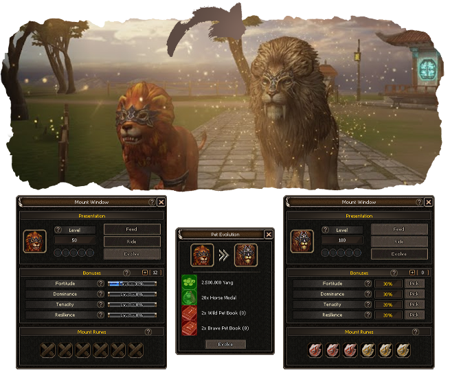 Create and refine Mount Runes to strengthen your mount. Each rune provides both a bonus and a malus that always change together when modified through various enchantment items. Casual-friendly feature: A specialized enchantment item allows for targeted modification of malus effects only.