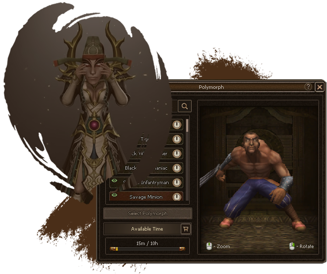 Polymorph plays a crucial role in high-level dungeons. Many high-level dungeons disable mount usage during boss stages, making Polymorph essential.Simply toggle the polymorph skill and transform into a selected monster through the dedicated User Interface. Manage your transformation time by refilling it with special potions.