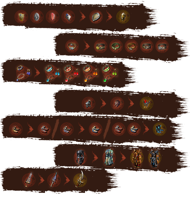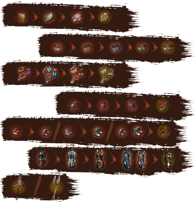 Improve your equipment and enhance its rarity by upgrading shards and refining your equipment with them. Equip at least 4 items of the same rarity or higher to activate an Item Rarity Set Bonus. The following rarities are available: Holy, Glorious, Chivalric, Royal, Majestic